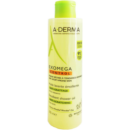 L’Huile lavante émolliente EXOMEGA CONTROL d’A-DERMA discount, un soin d’hygiène apaisant dans votre parapharmacie discount, qui nettoie, protège et apaise les peaux sèches à tendance atopique qui démangent avec grattage des nourrissons aux adultes. Visage corps