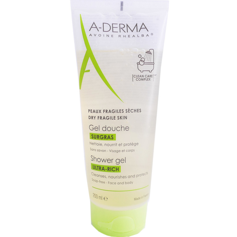 Le Gel douche Surgras enrichi en agents surgras, nettoie tout en douceur la peau, protège en formant et renforçant le film protecteur sur l’épiderme pour lutter contre les agressions, hydrate et apaise immédiatement et pour longtemps grâce à sa richesse en extrait de Plantules d’Avoine Rhealba, au complexe Clean Care (agent compensateur et base lavante douce). Sa texture moussante se rince facilement. Après la toilette, la peau délicatement parfumée, retrouve confort, douceur et souplesse. Sa formule biodégradable permet de préserver l’environnement. Sans savon pH physiologique. Testé sous contrôle dermatologique et pédiatrique