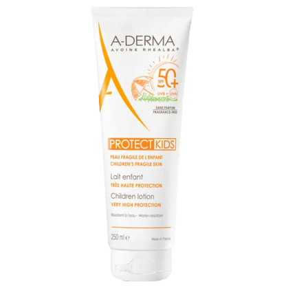 Le Lait Protect Kids SPF50+ discount d’ADERMA, le soin très haute protection à prix discount dans votre parapharmacie en ligne, destiné protéger très efficacement (SPF50+) des peaux fragiles des enfants du soleil. Visage et corps