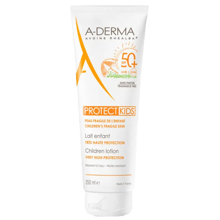 La gamme Protect d’Aderma, est composée de produits solaires qui protègent des coups de soleil le visage et le corps de toute la famille. Le Lait Protect SPF 50+ Kids est la très haute protection spécifique de la peau fragile des petits. Elle protège efficacement des dangers du soleil tout en préservant la peau délicate. Son système filtrant breveté anti-UVA-UVB longs et courts, protège en toute sécurité la peau fragile en renforçant les défenses de l’épiderme. Le Barriestolide issu de l’huile de plantules d’avoine Rhealba protège le film protecteur de l’épiderme et le renforce. Sa texture qui s’applique facilement ne laisse pas de traces blanches sur la peau et ne colle pas. Résistant à l’eau. Sans paraben, sans parfum