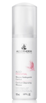 La gamme ALGOESSENTIAL est composée de produits de beauté pour toutes les peaux pour leur redonner du confort au quotidien. La Mousse nettoyante confort d’ALGOTHERM à base de Codium Tomentosum qui est un algue verte riche en polysaccharides associé à des actifs anti-pollution et de l’acide hyaluronique, nettoie le visage tout en douceur, élimine toutes les impuretés, les particules de pollution et le maquillage, protège la peau des agressions quotidiennes tout en hydratant et apaisant de tout inconfort et tiraillements. Après le soin, la peau est nette, souple et très douce, elle retrouve tout son éclat et son confort. Testé sous contrôle dermatologique