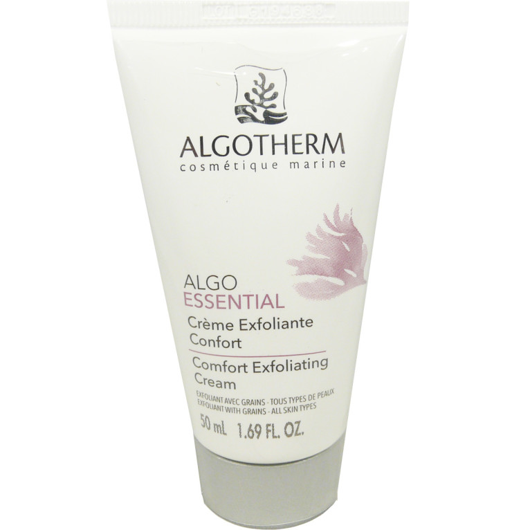 La gamme ALGOESSENTIAL est composée de produits de beauté pour toutes les peaux pour leur redonner du confort au quotidien. La Crème exfoliante Confort d’ALGOTHERM, composée de poudres de noyaux d’abricots et d’algues (verte, brune, micro-algue rouge) élimine toutes les impuretés et les cellules mortes de l’épiderme tout en douceur, hydrate et apaise les rougeurs et irritations en redonnant à la peau tout son confort. Après le soin, la peau est nette, douce et retrouve tout son confort. Jour après jour le grain de peau s’affine, les pores de la peau se resserrent pour un effet peau neuve, et le teint retrouve son éclat. Sans paraben. Sans phénoxyethanol Testé sous contrôle dermatologique