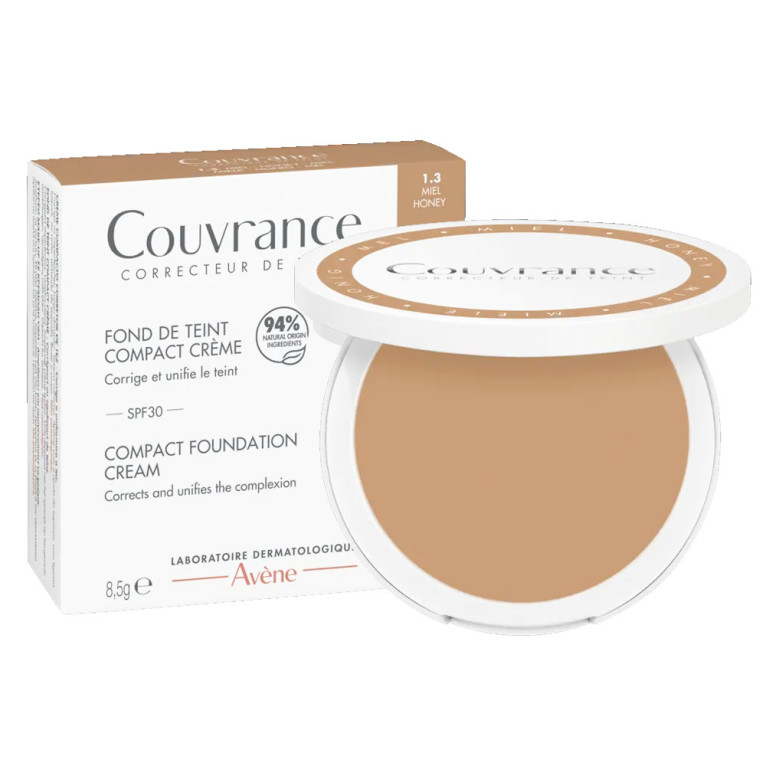 AVENE COUVRANCE FOND DE TEINT COMPACT CRÈME 8.5G en vente en ligne sur le site de votre parapharmacie à prix discount. Ce fond de teint compact de la marque Avène offre une couvrance parfaite tout en laissant respirer la peau. Teinte Miel 1.3