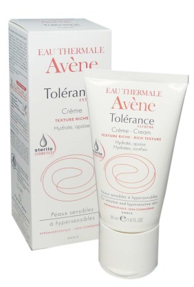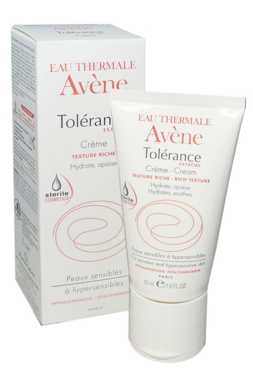 La gamme Tolérance Extrême d'AVENE est composée de produits très doux à utiliser au quotidien pour nettoyer, hydrater et apaiser les peaux sèches et sensibles du visage et du corps. Crème riche Tolérance Extrême à base de la cosmétique stérile qui contient seulement 7 ingrédients PHYSIO-compatibles pour le plus grand respect de la peau est composée d’agents hydratants et apaisants. Ces agents vont hydrater intensément l’épiderme pour redonner du confort, et apaiser de toute irritation. Sa texture PHYSIO-fine et riche fera de ce soin un moment agréable. Dès la 1ère application et pour longtemps, la peau ne tiraille plus, elle est douce, enveloppée dans un voile protecteur.