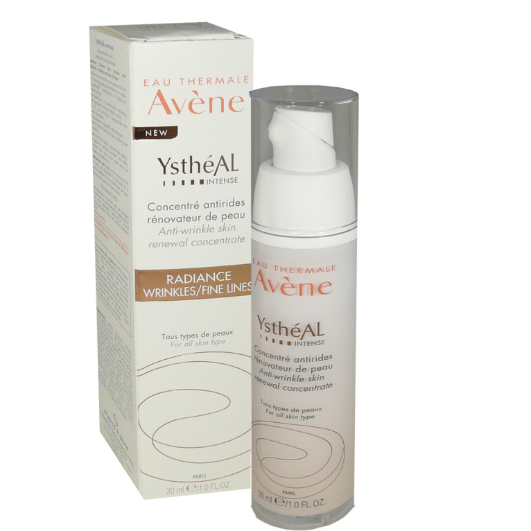 La gamme YSTHEAL, des soins anti-âge pour lutter efficacement contre la perte d'élasticité et d'éclat, et prévenir les signes de l'âge (rides, ridules, perte de tonus) pour retrouver un visage et un teint éclatant avec une peau lisse grâce à des actifs anti-âge et anti-oxydants. Le soin Ystheal Intense est un soin concentré rénovateur de peau sans parfum et sans paraben, qui prévient et atténue les signes de l'âge tels que les rides et ridules, la perte de la fermeté, en redynamisant les cellules de l'épiderme et en le protégeant par un film protecteur grâce au principe actif breveté qui est composé de Rétinaldéhyde, d’O.G.G. (lipopeptide anti-âge) et de Pré-Tocophéryl. L'eau thermale d'Avène apaise la peau de toutes irritations et inconforts. De jour en jour, les rides s'atténuent, la peau est plus ferme, plus tonique, et plus lisse, le visage retrouve toute sa jeunesse.