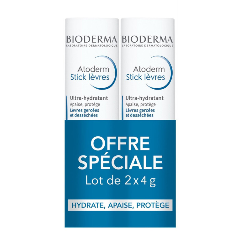 Stick lèvres Atoderm de BIODERMA Lot de 2, le stick réparateur et apaisant des lèvres gercées et très sèches, dans votre parapharmacie en ligne à prix discount. Pour toute la famille, à partir de 3 ans