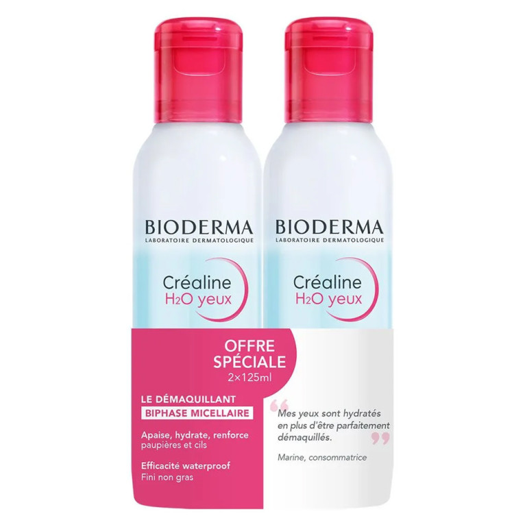 BIODERMA CREALINE H2O YEUX LE DEMAQUILLANT BIPHASE LOT DE 2X125ML: Découvrez ce lot de 2x125ml de démaquillant biphasé de la marque Bioderma. En vente en ligne sur le site de votre parapharmacie à prix discount.