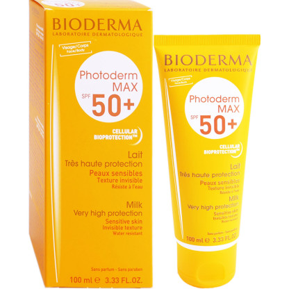 Photoderm Max Lait SPF50+ est la photoprotection spécifique de tous les types de peaux sensibles ou intolérantes au soleil exposées à un fort ensoleillement. Son système filtrant dermatologique anti-UVA et anti-UVB, et le complexe exclusif Bioprotection Cellulaire protège des intolérances solaires ainsi que du vieillissement prématuré des cellules en renforçant les défenses naturelles de la peau. Sa texture incolore, ne laisse pas de film gras et fond sur la peau pour une pénétration rapide à l’application sans laisser de traces blanches. Sans parfum, il offre une excellente tolérance. Photostable. Résistant à l’eau et non comédogène.