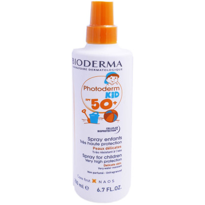 Le Spray enfants très haute protection Photoderm Kid SPF 50+ Enfant est la photoprotection spécifique de la peau sensible des enfants. Il protège efficacement les enfants des dangers du soleil à court et long terme tout en préservant leur peau délicate. Son système filtrant anti-UVA-UVB protège en toute sécurité la peau fragile des enfants en renforçant les défenses de l’épiderme. Le complexe exclusif Bioprotection Cellulaire, renforcé par le Peptide C qui est un dérivé de 3 acides aminés naturels (methionine, arginine, glycine), permet une protection optimale à long terme des cellules de la peau. Sa texture fondante et non grasse ne laisse pas de traces blanches sur la peau. Résistante à l’eau et photostable. Non comédogène. Sans octocrylène, sans paraben. Hypoallergénique