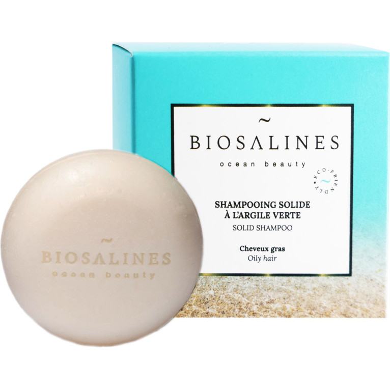 Shampooing solide Argile verte discount des laboratoires BIOSALINES, un soin d’hygiène capillaire naturel et écologique pour nettoyer et prendre soin des cheveux. Dans votre parapharmacie en ligne à prix discount. Pour cheveux gras de toute la famille (à partir de 3 ans).