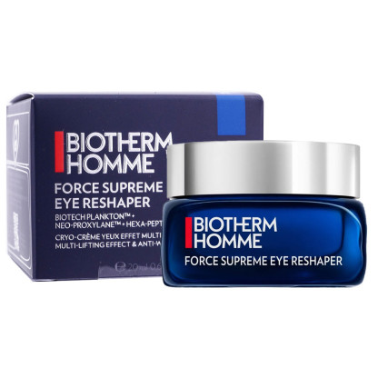 BIOTHERM HOMME FORCE SUPREME CREME YEUX 20ML est en vente en ligne sur le site de votre parapharmacie à prix discount, offrant une cryo-crème yeux à effet multi-liftant pour hommes, idéale pour le soin des contours des yeux.