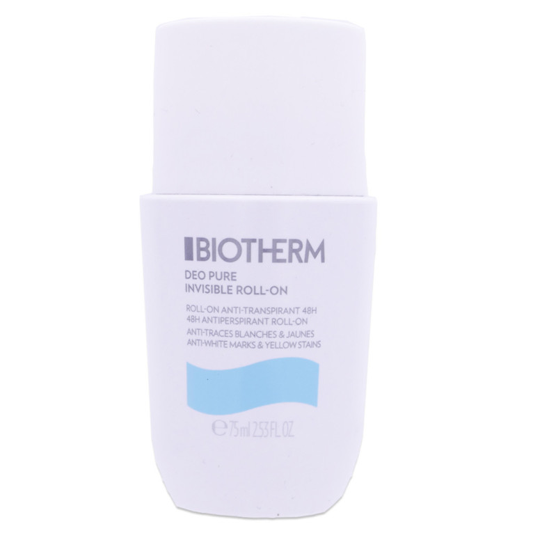 Deo pure invisible roll-on de BIOTHERM, le déodorant sous forme de roll-on qui laisse les aisselles saines pour toute la journée, même les plus sensibles pendant 48h.