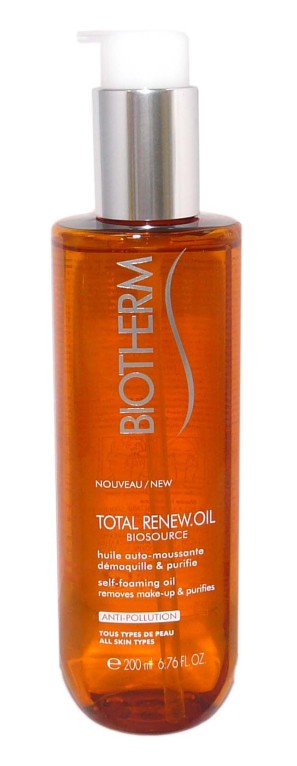 Total Renew Oil Biosource de BIOTHERM, le soin huile en mousse qui nettoie, purifie et démaquille tous les types de peaux du visage.