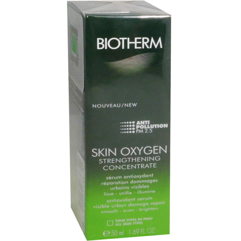 Les produits Skin Oxygen de BIOTHERM s'adressent aux personnes qui veulent préserver leur peau en luttant contre les effets de la pollution pour garder éclat et confort par les bienfaits des algues marines et des actifs antioxydants. Le Sérum antioxydant anti-pollution Skin Oxygen ultra-léger et frais non gras, redonne au teint et à la peau sa fraîcheur, protège des agressions extérieures et de la pollution, et ressource la peau en régénérant les cellules de l'épiderme par les bienfaits des algues Furcellaria et chlorella, aux pouvoir détoxifiant, antioxydant, anti-pollution, ainsi qu'à la vitamine E. Le Plancton de Vie™ (originaire des sources thermales des Pyrénées françaises) qui complète la formule, riche en 35 nutriments va régénérer la peau en profondeur et renforcer la barrière cutanée et ses défenses naturelles, et l'hydrater intensément. Dès l’application, la peau respire et retrouve de la vitalité, et le teint est radieux. Sans paraben