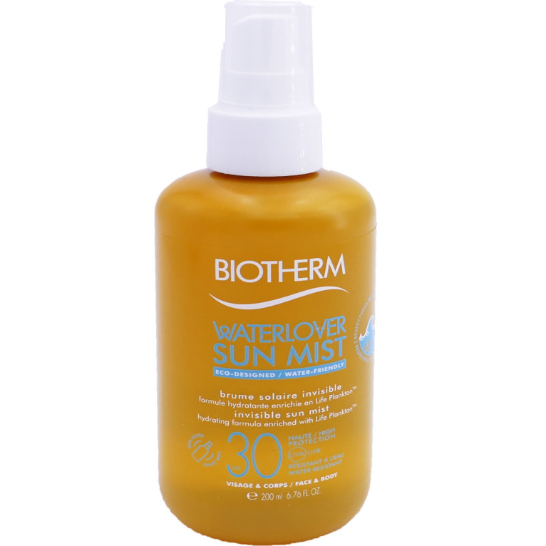 I Waterlover Sun Mist SPF30 de BIOTHERM discount, la haute protection solaire du visage et du corps de tous les types de peaux même les plus sensibles dans votre parapharmacie en ligne, respectueuse de l’environnement marin. Pour toute la famille (à partir de 3 ans).