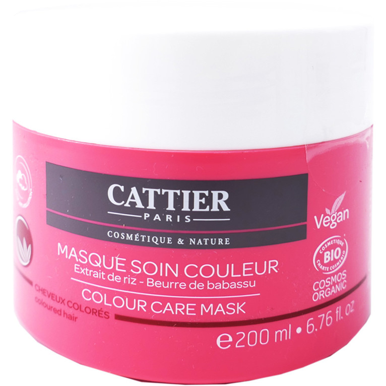 Masque Soin Couleur Bio discount de CATTIER, un soin capillaire à base d’extrait de riz et de beurre de Babassu, pour sublimer la couleur et révéler son éclat, dans votre parapharmacie en ligne à prix discount.