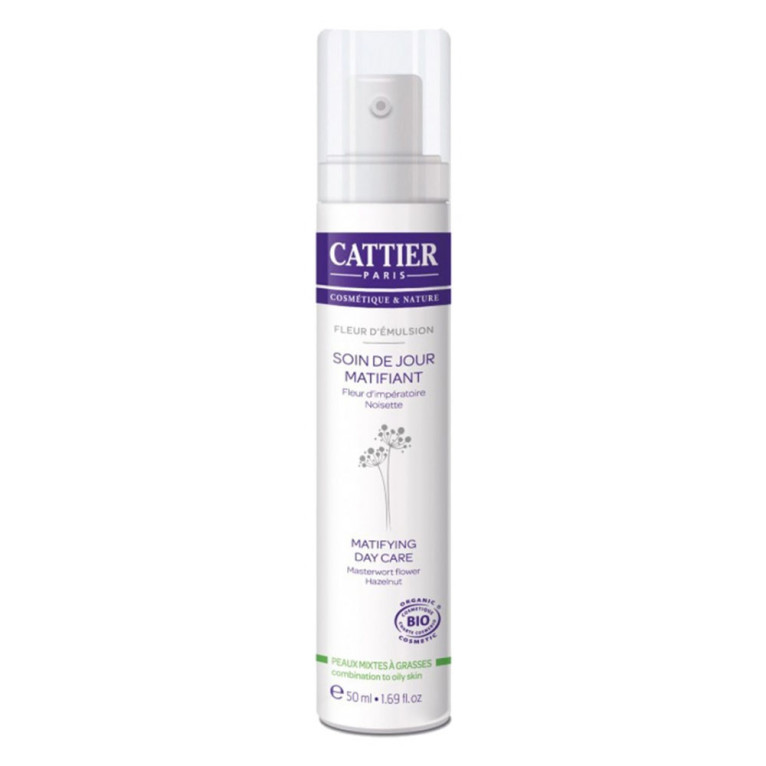 Le laboratoire CATTIER développe des produits pour le soin et le bien-être de toute la famille à base d’ingrédients naturels bio et d’argiles sans silicone, sans paraben, sans produits chimiques. Le soin de jour matifiant de CATTIER composé d’actifs riches aux propriétés antioxydantes, nourrissantes, réparatrices, et astringentes tels que l’huile de noisette bio, de beurre de karité bio, d’extrait de fleur d’impératoire et de phycosaccharide qui est un extrait d’algue brune), rééquilibre le pH cutané, resserre les pores de l’épiderme et élimine l’excès de sébum, répare l’épiderme, nourrit, matifie, purifie, hydrate intensément et apaise de tout inconfort. Sa texture légèrement poudre laisse la peau très douce après l’application. Après le soin la peau est matifiée sans zone de brillance, purifiée et douce.