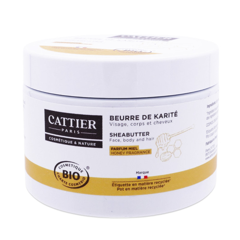Le laboratoire CATTIER a conçu des produits pour le soin et le bien être de toute la famille à base d’ingrédients naturels bio et d’argiles sans silicone, sans paraben, sans produits chimiques. Le beurre de karité peut s'utiliser sur les cheveux et le corps. Sur la peau, il protège, répare de la sècheresse, de l'exposition au soleil ou du passage du rasoir, nourrit, hydrate et apaise. Sur les cheveux il protège dès la racine, redonne de la vitalité, de la douceur et de la brillance. Sur le corps par des massages il détendra et permettra de relâcher toutes les tensions musculaires et nerveuses. Grâce à la richesse en vitamines A, D et E, le beurre de karité embellira la peau et les cheveux. Après le soin, le beurre laisse la peau souple et très douce et la chevelure brillante et douce en enveloppant le corps et les cheveux par une exaltation gourmande de miel !
