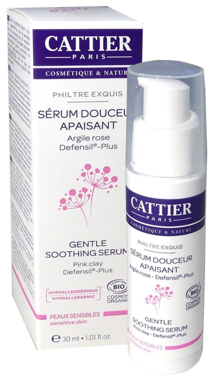Le laboratoire CATTIER développe des produits pour le soin et le bien être de toute la famille à base d’ingrédients naturels bio et d’argiles sans silicone, sans paraben, sans produits chimiques. Le Sérum douceur apaisant est composé de Défensil plus (issu du cassis, d’une plante tropicale et du tournesol), d’extrait bio de lin, de Bioécolia issu de sucres naturels, d’algue rouge, d’argile rose (riche en minéraux et oligo-éléments) et d’eau florale de Damas. Il va protéger la peau de la sensibilité des agressions extérieures (froid, pollution, chaleur,…) en renforçant ses défenses naturelles, estomper les rougeurs, diminuer toute sensation d’inconforts, hydrater en stimulant la synthèse de l’acide hyaluronique naturellement présent dans la peau, adoucir et apaiser immédiatement. Dès l’application, la peau est protégée et retrouve sa douceur, les sensations d’inconforts sont apaisées. Testé sous contrôle dermatologique. Hypoallergénique