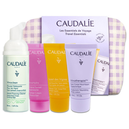 Découvrez la trousse Les Essentiels de Voyage de la marque Caudalie, idéale pour emporter partout avec vous vos soins préférés.