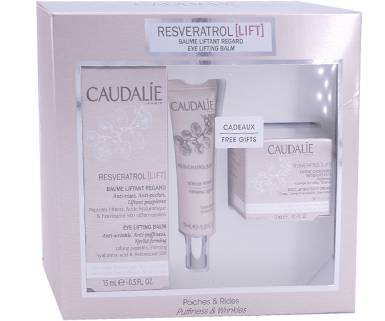Le Coffret « Resveratrol Lift » de CAUDALIE, 3 soins anti-âge et repulpant pour retrouver une peau raffermie et un visage resplendissant de jeunesse ! Baume liftant Regard (15ml) Crème Cachemire redensifiante (15ml) offerte ; Sérum Fermeté (10ml) offert.