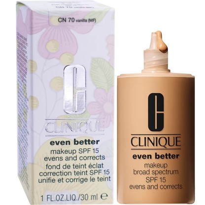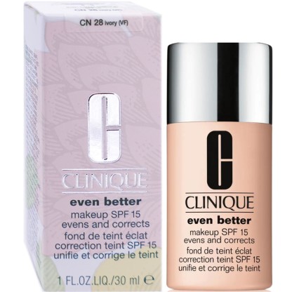 Even Better Fond de Teint Eclat Correction Teint SPF15pas cher de CLINIQUE, la dermo- cosmétique de pointe dans votre parapharmacie en ligne à prix pas cher, dans un soin qui camoufle les taches sur le visage en 12 semaines et unifie le teint des peaux sèches à mixtes.