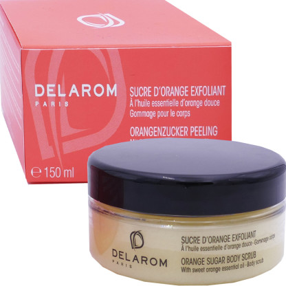 Sucre d'orange exfoliant de DELAROM dans votre parapharmacie en ligne à prix discount, le soin bio fruité corporel dans votre parapharmacie en ligne à prix discount, pour gommer tout en douceur la peau et lui redonner de l’éclat. Tous types de peaux Corps