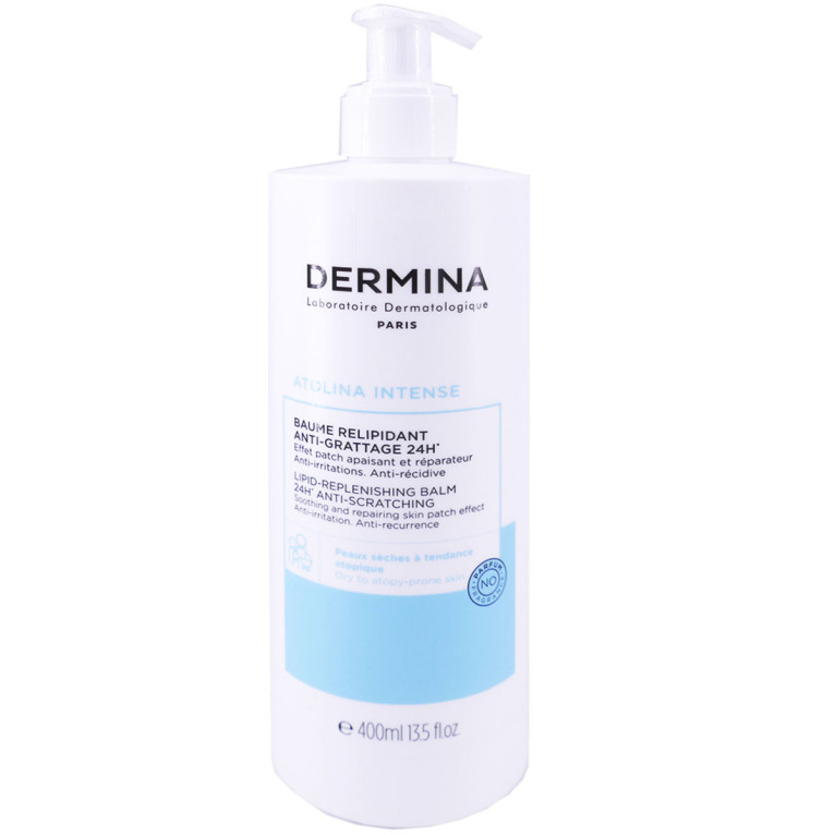 Baume relipidant ATOLINA INTENSE du laboratoire DERMINA discount, le soin anti-dessèchement haute-tolérance dans votre parapharmacie en ligne à prix discount, pour relipider et apaiser les peaux sèches à tendance atopique de toute la famille. Visage et corps.