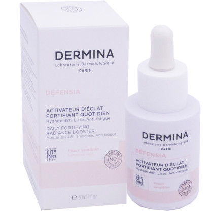 La gamme Defensia du laboratoire dermatologique DERMINA contient des produits très doux concentrés en brevet CITYFORCE qui viennent aux besoins des peaux fragilisées par la vie urbaine quotidienne pour protéger, fortifier, et redonner de l’éclat au teint. Le Sérum Lissant Hydratant 48H DEFENSIA à base du brevet CITYFORCE antioxydant, réparateur et apaisant, va protéger des agressions quotidiennes (pollution, tabac, poussière,…), réparer la barrière cutanée pour mieux se défendre en 24 heures, hydrater la peau intensément pour préserver l’eau en profondeur et assurer une hydratation en continu tout en l’adoucissant pendant 48 heures, lisser la peau pour la défatiguer, et apaiser de tout inconforts. Sa texture fluide et légère non grasse et non collante, fond dès l’application, et laisse la peau unifiée avec une grande douceur après le soin. Le teint retrouve sa luminosité, les marques de fatigue s’estompent, la peau retrouve éclat et jeunesse. Hypoallergénique. Sans parfum ajouté. Tolérance testée sous contrôle dermatologique.