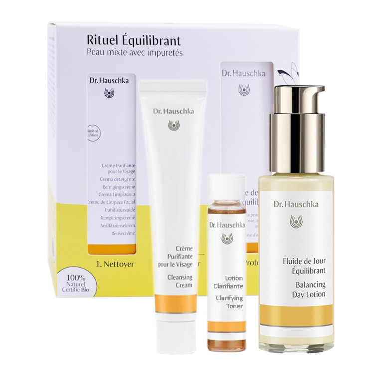 Fluide jour équilibrant : Aqua, Alcohol, Persea Gratissima Oil, Anthyllis Vulneraria Extract, Glycerin, Tapioca Starch, Prunus Armeniaca Kernel Oil, Sesamum Indicum Seed Oil, Sodium Silicate, Equisetum Arvense Extract, Acacia Senegal Gum, Veronica Officinalis Flower/Leaf/Stem Extract, Tropaeolum Majus Flower/Leaf/Stem Extract, Daucus Carota Sativa Root Extract, Salvia Officinalis Leaf Extract, Hippophae Rhamnoides Fruit Oil, Simmondsia Chinensis Seed Oil, Glyceryl Citrate/Lactate/Linoleate/Oleate, Parfum*, Citral*, Limonene*, Citronellol*, Linalool*, Geraniol*, Xanthan Gum, Algin, Glyceryl Oleate Citrate, Sucrose Polystearate, Helianthus Annuus Seed Oil, Citric Acid, Propolis Cera. *from natural essential oils