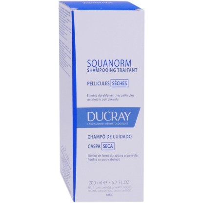 La gamme SQUANORM du laboratoire Ducray est composée de soins capillaires pour traiter les cuirs chevelus ayant des squames ou des pellicules. Le shampooing à la texture crème onctueuse, composé d'actifs spécifiques antipelliculaires nettoie les cheveux et élimine les pellicules sèches sur le cuir chevelu pour protéger des irritations en assainissant le cuir chevelu et en l’hydratant. De haute tolérance avec une base lavante assainissante, il prend soin des cheveux et du cuir chevelu sans les agresser. Dès le premier shampooing le cuir chevelu est apaisé de tout inconfort et démangeaisons, les pellicules sont éliminées, les cheveux retrouvent volume et brillance, et sont extrêmement doux et parfumés.