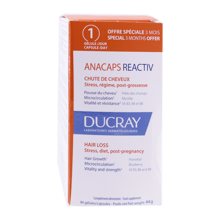 DUCRAY ANACAPS REACTIV CHUTE DE CHEVEUX 90 GELULES en vente en ligne, sur le site de votre parapharmacie à prix discount.