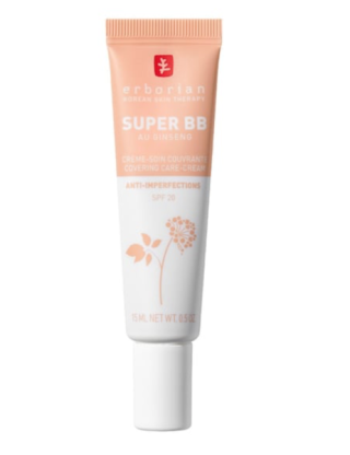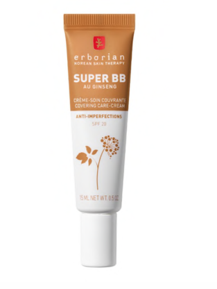 Super BB d’ERBORIAN a la particularité d’agir sur 2 actions en 1 seul produit : anti-imperfections et beauté du teint ! Inspiré de la tradition coréenne, il est formulé à base d’actifs émollients, nourrissants, anti-imperfections et antioxydants : ginseng blanc, fleur de ginseng fermenté associé à des extraits de réglisse, igname, fruit de kigelia et prêle. De la niacinamide et de l’huile de graines de jojoba complémentent la formule pour diminuer les imperfections, rougeurs et taches pigmentaires, et lutter contre la déshydratation cutanée en nourrissant et adoucissant la peau. La Super BB Crème redonne un joli teint en adoucissant la peau pour lui donner un effet « peau de bébé ». Utilisé la crème légère et confortable, procurera sur la peau un fini satiné naturel et un teint sans imperfections unifié sans effet masque.