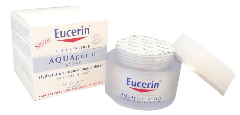 La gamme Aquaporin du laboratoire EUCERIN est composée de produits ultra-hydratant pour les peaux sensibles déshydratées à base de gluco-glycérol pour une hydratation en profondeur et en continu. Aquaporin Active SPF25 UVA est une crème à base de gluco-glycerol, et d’un indice UVA/UVB (SPF25) qui va participer à la formation d’aquaporines (canaux d’hydratation dans l’épiderme) pour favoriser le transport de l’eau dans les cellules cutanées afin d’hydrater dès l’application et pour longtemps la peau et l’apaiser des tiraillements causés par la sècheresse, et protéger des méfaits du soleil. Sa texture crème pénètre rapidement à l’application pour laisser la peau souple, confortable et d’une grande douceur.