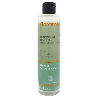 FLORAME BIO SHAMPOOING FORTIFIANT 250ML est en vente en ligne sur le site de votre parapharmacie à prix discount, conçu pour fortifier les cheveux fragiles et pour un usage quotidien.
