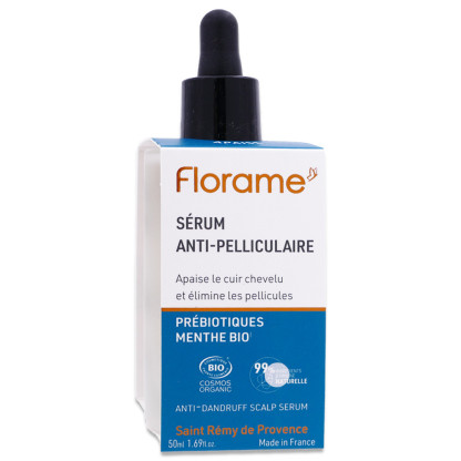 FLORAME SERUM ANTI PELLICULAIRE BIO 50ML est en vente en ligne sur le site de votre parapharmacie à prix discount, conçu pour réguler l'excès de sébum et cibler les pellicules, idéal pour un usage sur cuir chevelu sensible.