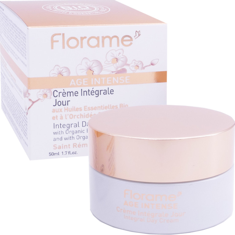 FLORAME est une marque spécialisée dans la fabrication de produits cosmétiques conçus à base d’huiles essentielles biologique rigoureusement contrôlés et certifiés par des labels officiels pour assurer qualité, efficacité, sécurité, respect du corps humain et de son environnement. Age Intense Crème Intégrale Jour est un soin à la texture onctueuse et enveloppante, à base d’extrait de Myrte Bio, d’herbe d’Immortalité, de Cistus Incanus et des Cellules Souches d’Orchidée qui grâce à leurs actions combinées vont permettre de raffermir la peau, d’estomper les rides et redessiner l’ovale du visage...