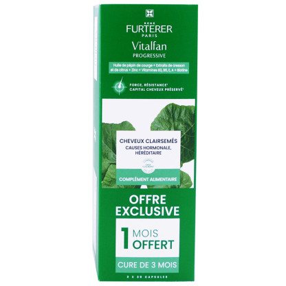 VITALFAN Atichute Progressive discount René FURTERER, le rituel de beauté en complément alimentaire dans votre parapharmacie en ligne à prix discount, pour freiner la chute de cheveux progressive et stimuler la repousse.