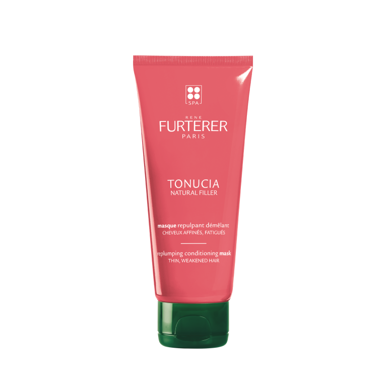 Depuis 1957, La marque René Furterer développe des rituels de soins capillaires à base d’huiles essentielles 100 % naturelles et d’extraits végétaux rigoureusement sélectionnés pour leurs vertus spécifiques, afin d’offrir beauté et santé aux cheveux de la façon la plus naturelle possible. La gamme Tonucia de RENE FURTERER est composée de soins capillaires à base d'huiles essentielles d'origine naturelles et d'extraits de plantes pour redonner du tonus aux cheveux dévitalisés et fatigués. La formule exclusive de TONUCIA Masque Repulpant Démêlant est composée d’huile essentielle d’orange assainissante à l’action stimulante sur la microcirculation, d’acide hyaluronique végétal like100% d’origine naturel aux propriétés hautement hydratante sur la fibre capillaire et protectrice en comblant les écailles, de Microprotéines de blé gainantes et d’un complexe naturel issu du soja le Cimentrio, exceptionnellement riche en lipides et en protéines, pour fortifier les cheveux dévitalisés en redendifiant en profondeur la fibre capillaire. Les cheveux retrouvent de la résistance, ils apparaissent plus jeunes et la chevelure plus dense.