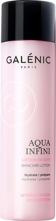 La gamme Aqua infini de GALENIC est composée de soins ultra-hydratants à base de Fleur de Rocher pour redonner aux peaux sèches éclat et confort. Aqua Infini Lotion de soin est un soin enrichi en fleur de rocher, (plante du désert mexicain de Chihuahua) cette plante est utilisée dans un complexe Tamis moléculaire (brevet GALENIC) qui est composée d’un maillage spécifique de 3 tamis aux propriétés ultra-hydratante, associée à de l’acide hyaluronique, des polymères de gélification et de glycérine végétale. Elle prépare la peau à recevoir un soin quotidien, et hydrate intensément la peau en profondeur afin de préserver en continue l’eau dans les cellules cutanées. Après le soin, la peau retrouve de la fraîcheur, tout son confort, elle est douce, et est délicatement parfumée aux belles senteurs boisées et florales (lotus, pivoine, musc et ambre).