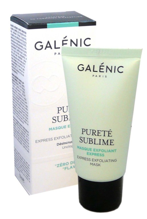 Depuis 1978, GALENIC offre le meilleur de la nature à travers sa connaissance approfondie de la physiologie cutané, et développe des produits dermo-cosmétiques haut de gamme pour accompagner les femmes exigeantes dans leur quête de beauté. La collection PURETE SUBLIME propose des rituels de soins purifiants conçus pour offrir une peau zéro défaut. Ces soins sont composés d’eau granitique des Pyrénées, reconnue depuis des siècles pour sa richesse en minéraux et oligo-éléments, ses pouvoirs purifiants et astringents incomparables. PURETE SUBLIME masque exfoliant express de GALENIC, à la texture masque-crème parsemée de microbilles gommantes, aux notes acidulées et florales de fleur d’oranger et jasmin, enrichi en zinc sébo-régulateur, eau florale d’hamamélis apaisante, poudre d’argile fine et micro-poudres absorbantes, est un soin spécialement formulé pour désincruster les impuretés de la peau et raviver l’éclat du teint.