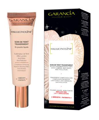 GARANCIA développe des produits dermo-cosmétiques uniques, qui allient ingrédients botaniques traditionnels, nouvelles technologies, rituels de beauté modernes et anciens, pour offrir aux femmes exigeantes des soins d’une rare efficacité, enveloppés d’un univers de magie. HALLUCINOGENE Soin de teint transparent de GARANCIA, est un soin magique gorgé d’actifs protecteur anti-pollution, anti-âge et bonne-mine. Sa formule magique combine un complexe LUMIJEUNE-AP, un film anti-pollution d’origine naturel, des peptides de jeunesse, des poudres de lumière et 3 extraits botaniques. Le Film Anti-pollution d’origine naturelle va assurer la protection de la peau contre les agressions quotidiennes, la pollution tout en laissant respirer la peau. Les Peptides De Jeunesse vont en seulement 7 jours diminuer la longueur et la profondeur des rides. Les Poudres De Lumière permette de réfléchir la lumière naturellement sur la peau afin d’illuminer le teint et regalber le visage. Les extraits botaniques vont agir sur les défenses de la peau et les signes de l’âge : l’extrait de Champignon Sacré Shiitake (tiré en lentinanes) pour renforcer la peau et ses défenses naturelles, les extraits de Feuilles de Gentiane Indienne des Hauts plateaux de l’Himalaya et de poivre de Sichuan aux pouvoirs anti-rides pour lisser la peau en réduisant rides et ridules. Sa texture poudre liquide en fait un soin agréable. Résultat La peau est éclatante tout au long de la journée et repulpée, le teint est lumineux. Sans silicones, Sans paraben, Sans phénoxyethanol. Testé sous contrôle dermatologique
