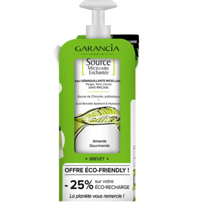 GARANCIA SOURCE MICELLAIRE EAU DEMAQUILLANTE AMANDE GOURMANDE 400ML + RECHARGE 400ML