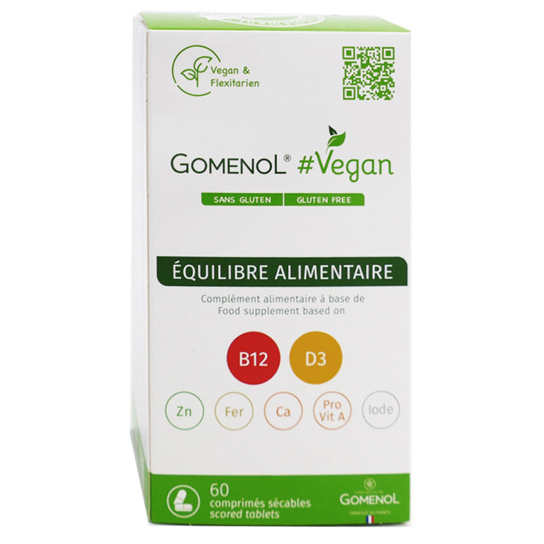 GOMENOL EQUILIBRE ALIMENTAIRE 60 COMPRIMES en vente en ligne sur le site de votre parapharmacie à prix discount est un complément alimentaire de qualité supérieure qui vous accompagnera dans le cadre d'un régime alimentaire fléxitarie ou végétarien.