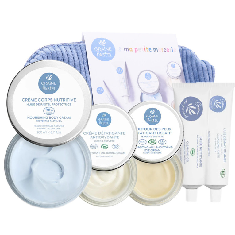 GRAINE DE PASTEL TROUSSE RITUEL DOUCEUR 5 SOINS : Découvrez une routine de beauté complète en vente en ligne, sur le site de votre parapharmacie à prix discount. Offrez à votre peau le soin qu'elle mérite avec cette trousse qui allie douceur et efficacité.