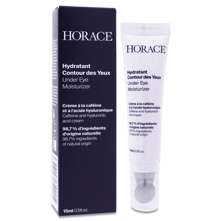 Fabriqué par la marque Horace, ce soin présente une texture légère et non grasse, idéale pour une application quotidienne. Il contient de la caféine, reconnue pour son rôle cosmétique dans la réduction de l’apparence des poches, du jus d'aloe vera, qui contribue à l'hydratation de la peau, et de l'acide hyaluronique, réputé pour son pouvoir hydratant et son effet lissant. Ce soin est spécifiquement formulé pour convenir à tous les types de peau, offrant une sensation de fraîcheur immédiate et un regard reposé sans brillance excessive.