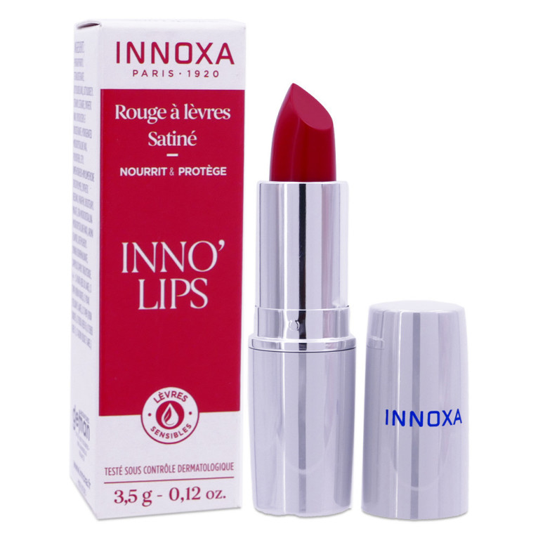 Le rouge à lèvres Satiné discount d'INNOXA, haute tolérance, couleur et protection dans un rouge à lèvres hydratant conçu pour le soin des lèvres fragiles, dans votre parapharmacie en ligne à prix discount. Rouge Couture 401