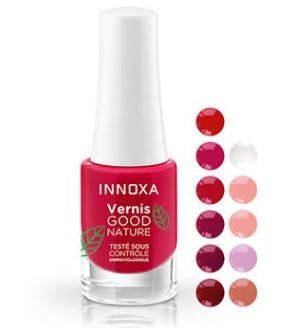 Depuis 1920, INNOXA offre aux femmes des soins de maquillage qui allient séduction, plaisir des textures, couleurs intenses, formules haute tolérance, spécialement développés pour la mise en beauté des peaux et des yeux sensibles. INNOXA propose une gamme de maquillage « Good Nature » conçus pour respecter les engagements de bienveillance et d’innocuité et embellir les yeux, les lèvres et les ongles naturellement ! La formule des vernis biosourcée (73% minimum d’origine végétale) hypoallergénique, est à base de solvant végétaux et ingrédients d’origines naturelles et renouvelables (coton, pomme de terre, manioc, canne à sucre) pour fortifier les ongles et assurer une excellente tenue avec plus de naturalité. INNOXA offre également une large palette de couleurs pour répondre à toute les envies féminines. Les vernis sont faciles à appliquer grâce à un pinceau spécialement étudié pour épouser la forme de l’ongle, sèchent rapidement et assurent un résultat intense et longue tenue garanti ! Testés sous contrôle dermatologique.