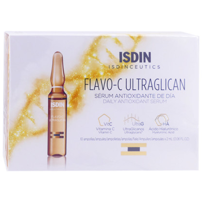 Flavo C Ultraglican des laboratoires ISDIN discount, un soin anti-âge sous forme d’ampoules dans votre parapharmacie en ligne à prix discount, qui lutte et prévient les signes du vieillissement cutané.