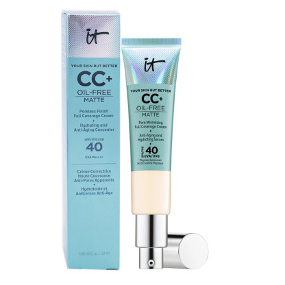 YOUR SKIN BUT BETTER CC+ Cream Oil Free Matte SPF40 discount de IT COSMETICS, une CC crème 7 en 1 teintée pour une couvrance zéro défaut, dans votre parapharmacie en ligne à prix discount. Tous types de peaux avec imperfections.